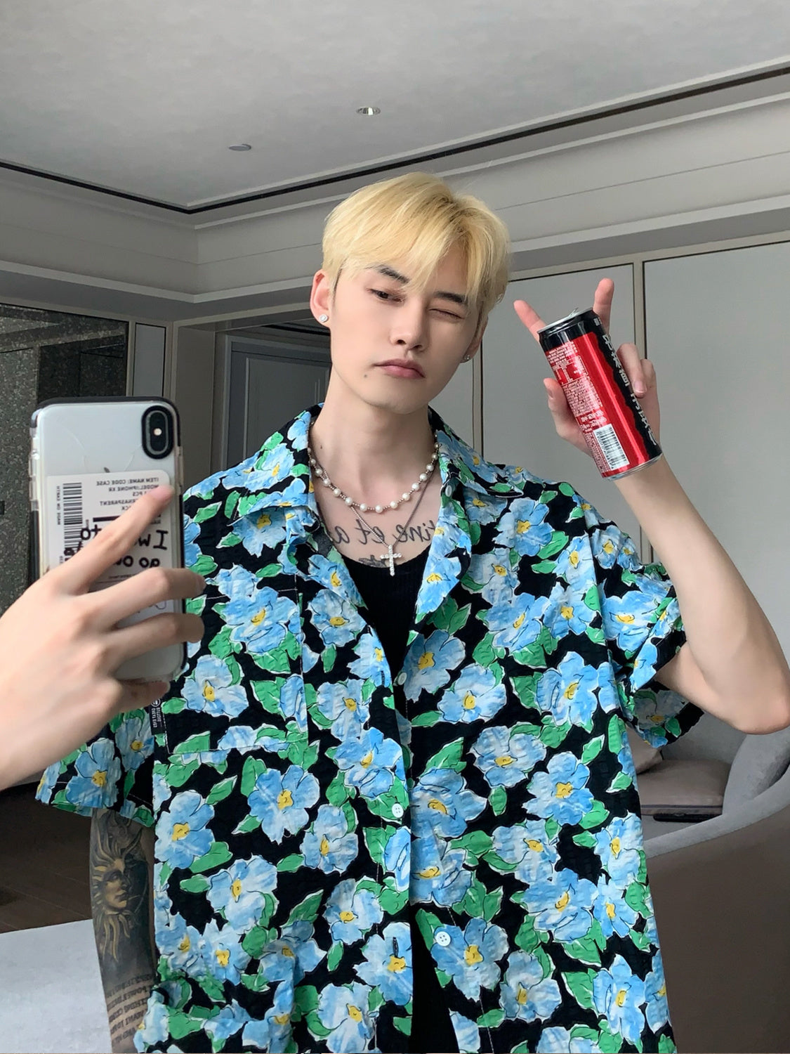 Hawaiian Contrast Floral Shirt Men*1