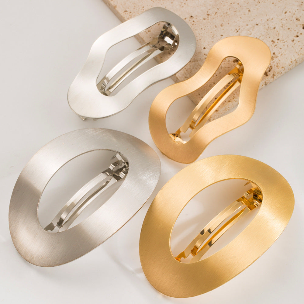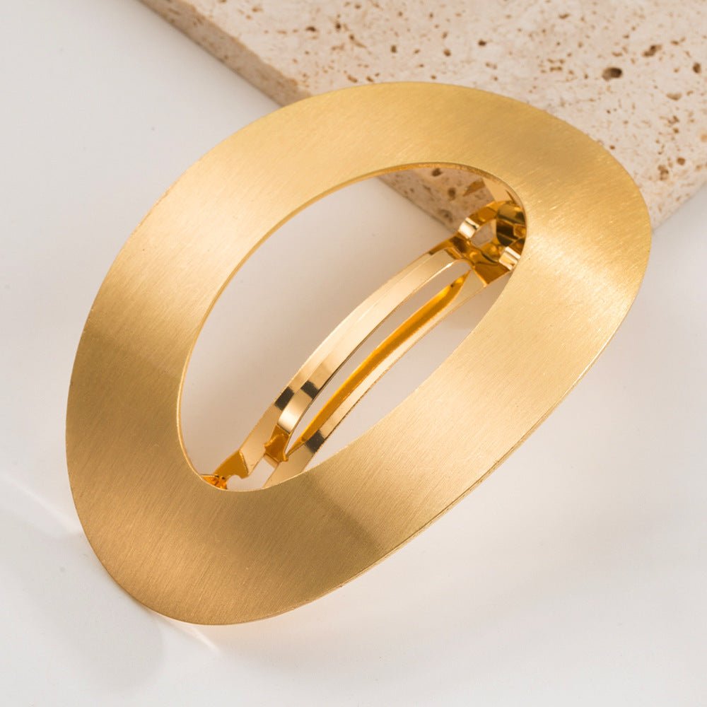 Japanese And Korean Simple Style Metal All-match Geometric Spring Clip Oval Hollow Hair Accessories