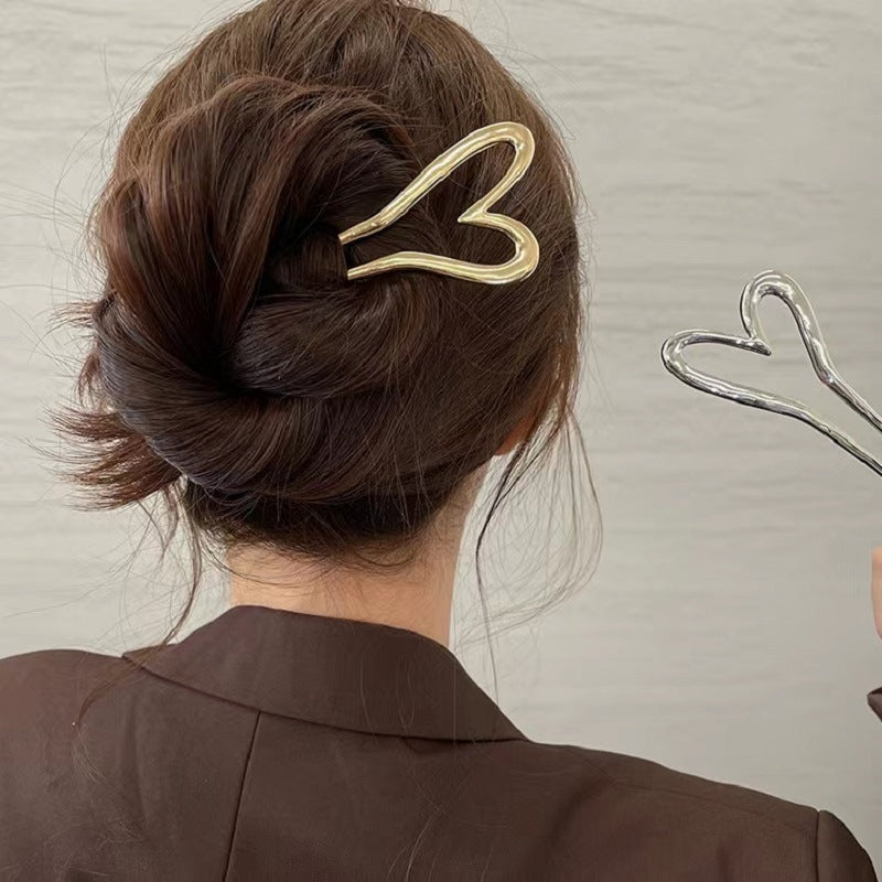 New Chinese Style Simple Love U-shaped Alloy Hairpin Back Head Hair Comb Updo Hair