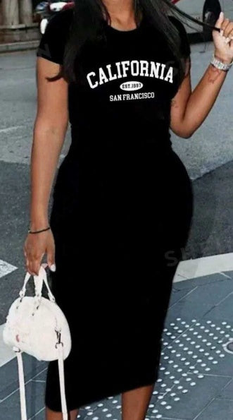 Slayr Casual MILANO Pattern Short Sleeve Crew Neck Bodycon Mid-Length Dress For Women, Summer