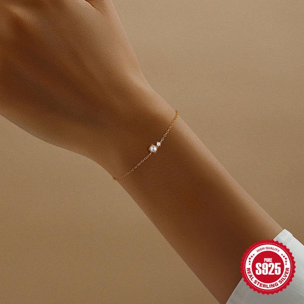 Sterling Silver Pearl Diamond Bracelet Niche Design